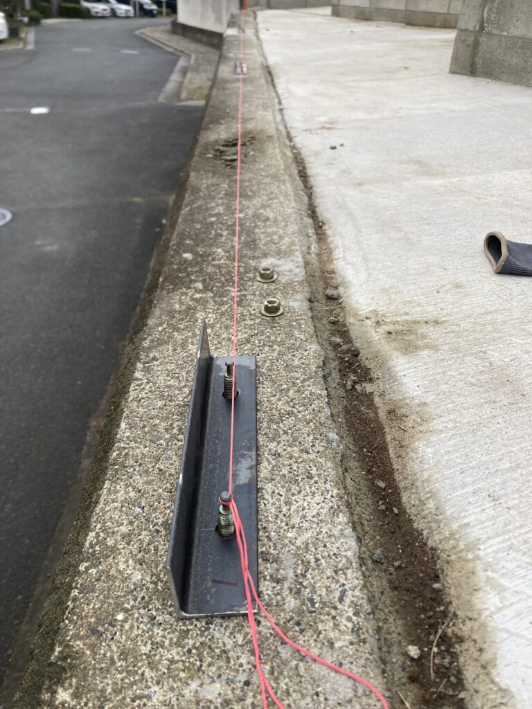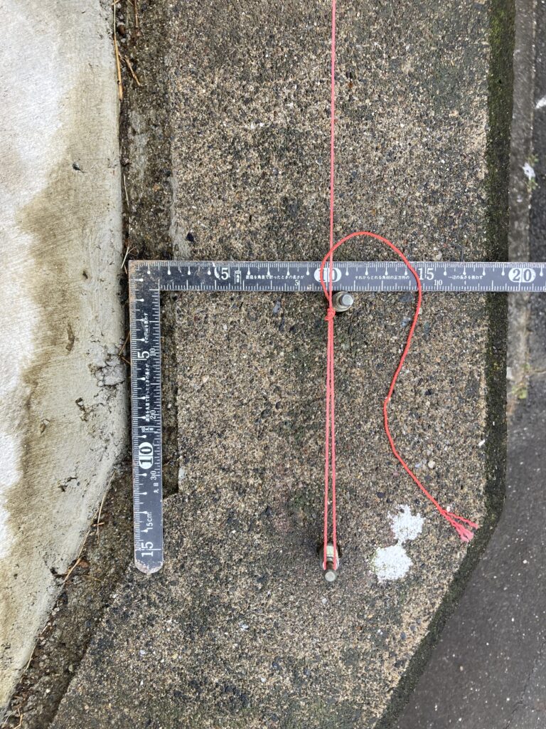 改めて糸で確認しましたが、中心からのブレ幅は許容範囲です。許容とはLアングルの内側の寸法内にアンカーのワッシャーボルトが締め込めるかどうかという寸法内であると言うことです。