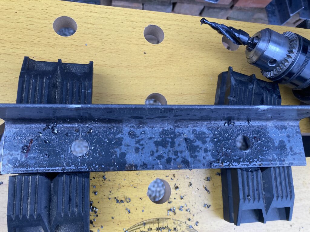 ステップドリルの刃は4、6、8、10、12㎜の5段階になっており、下穴に向かって押し込むと本当にステップで穴が開き、あっという間に12㎜の穴を開けることができました。これは良い買い物をした。全部で6*2=12箇所開けました。