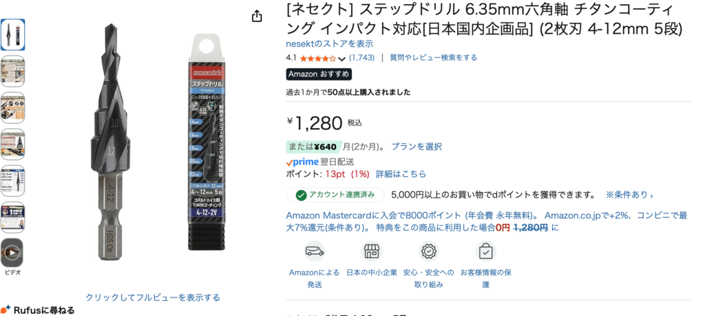 これもAmazonで買って届いたばかりのステップドリル。初めて使いますがしっかり穴は開くのか?
