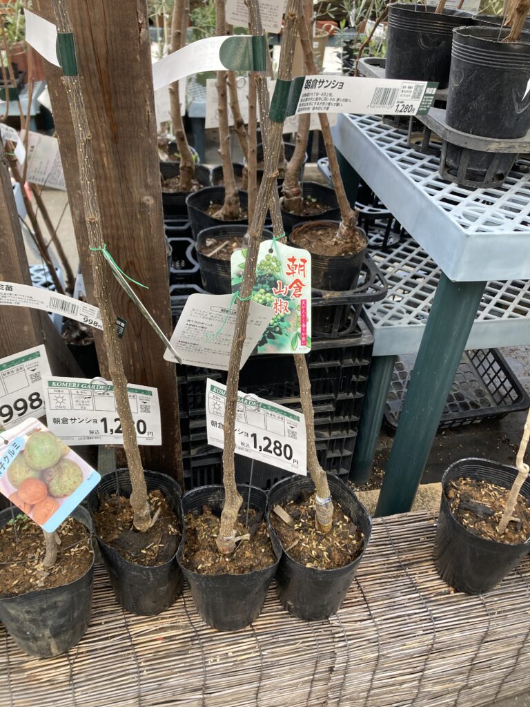 山椒の木、朝倉サンショウがありますね。棘はないみたいです。これもそのうちに植えてみたい。