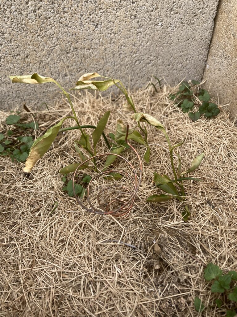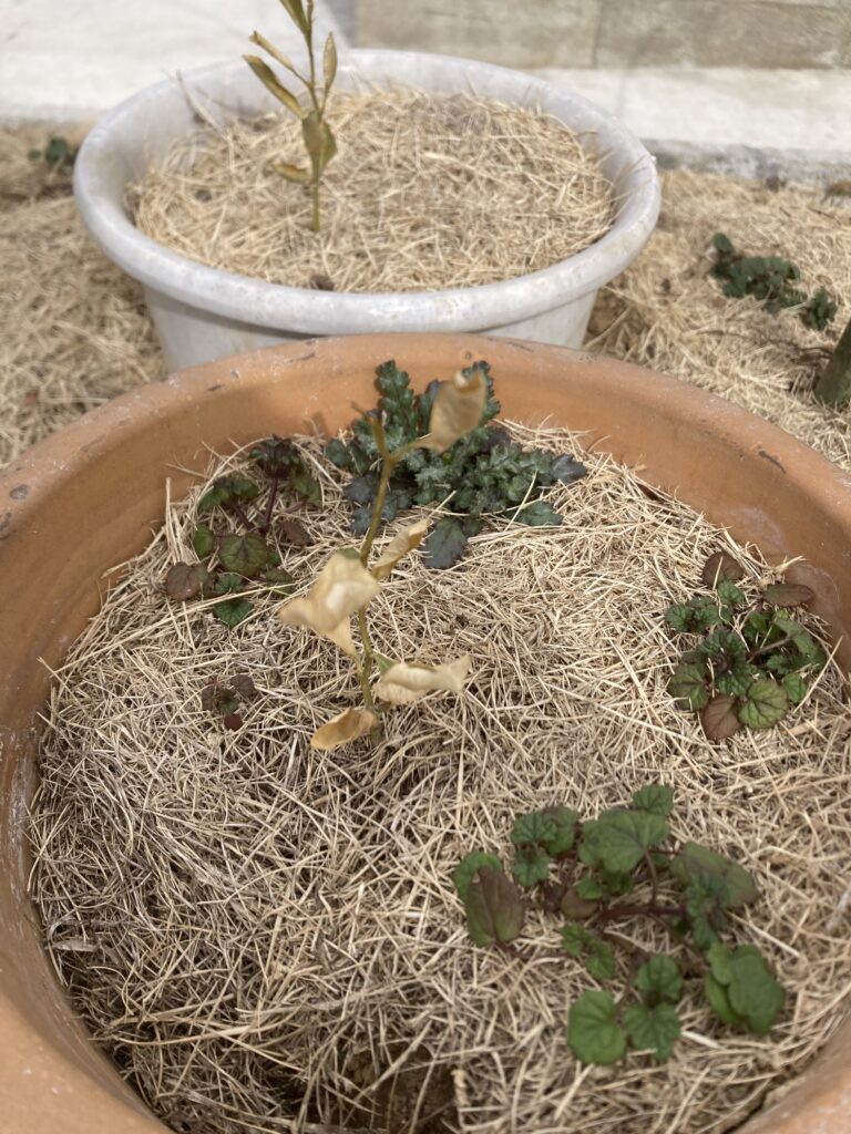 こちらは地植えのはるか、先端は枯れそうですが、周囲の風避け対策でなんとか持ち直してくれそうです。