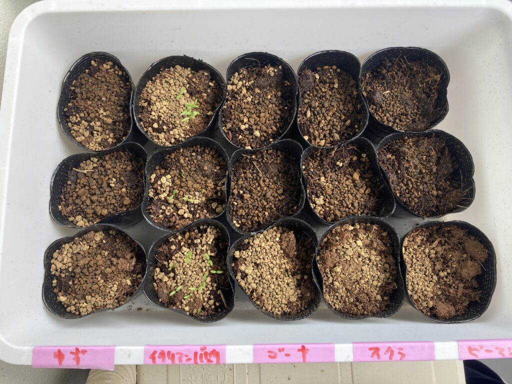 こちらは発芽率が低いですが、用土にも問題があるようです。イタリアンパセリだけたくさん芽を出しました。