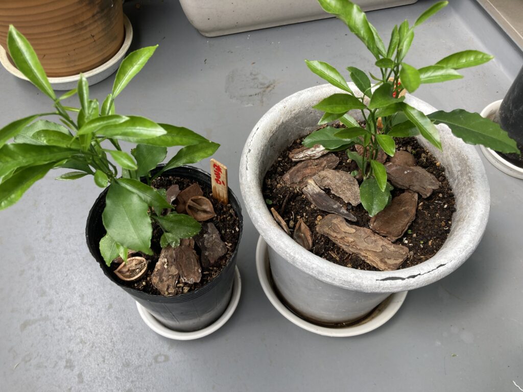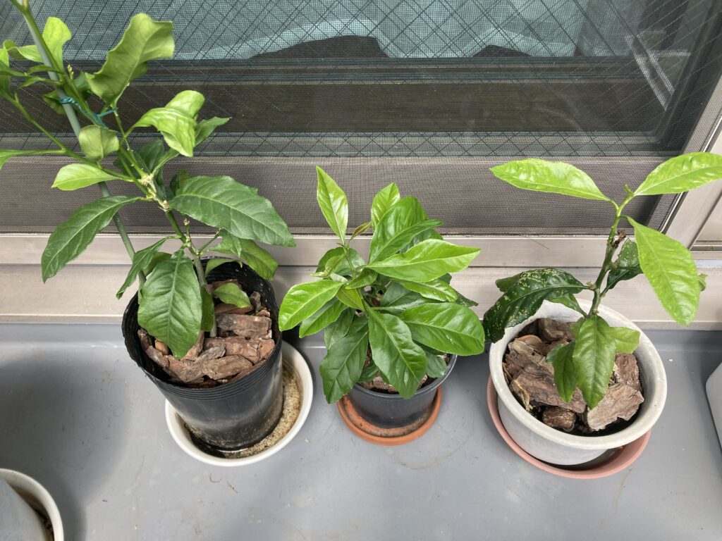 レモンです。暖かくなって新しい葉っぱが生えて来ました。緑色が少し薄いのが新葉です。