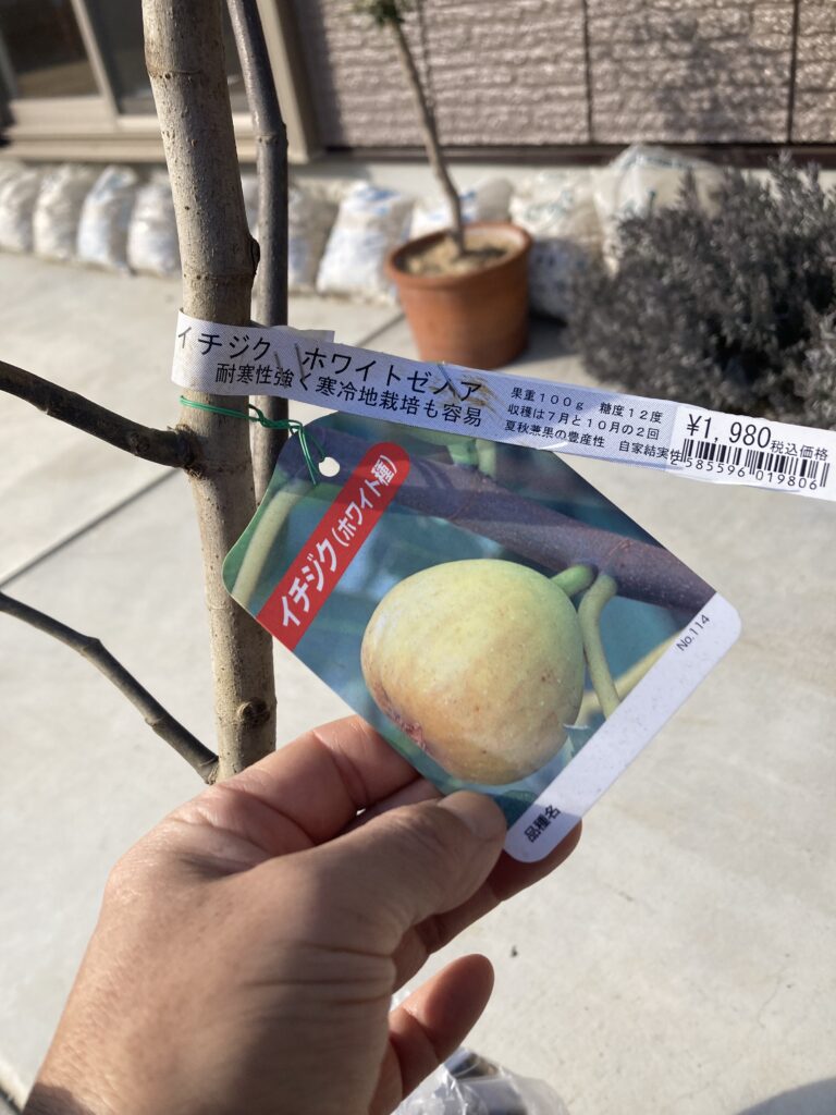 カインズに行って果樹苗を見てきました。気になったのはポポーとイチジク。去年植えたイチジクは桝井ドーフィンなので白か黒の実をつける種類にしようと考えていたところ、ホワイトゼノアという1年苗(それにしては立派)がありましたので1本購入。ホワイトイスキアがあればそちらにしましたが無し。
