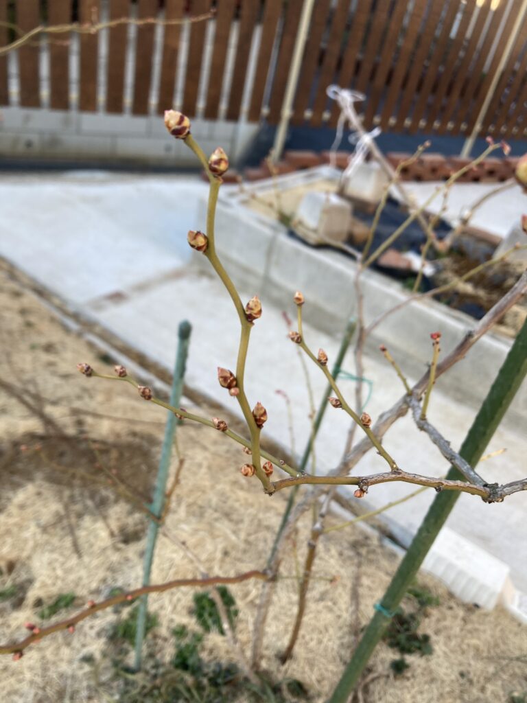 近くで見るとびっしりと花芽が育っており、今年も沢山のブルーベリーが取れそう。